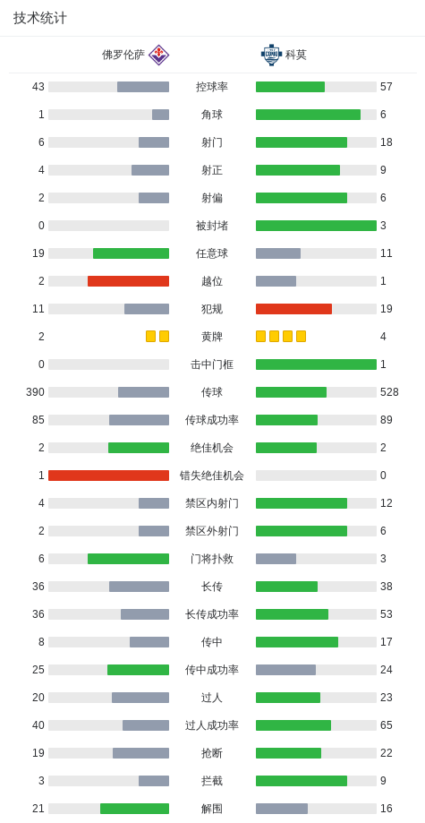 第20分钟,罗贝托小角度补射破门扳平比分,科莫1-1佛罗伦萨