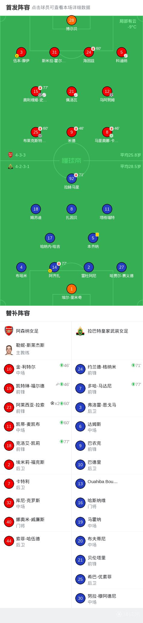 第21分钟,雷杜阿尼手球送点,马里奥娜-卡尔登泰操刀命中,阿森纳女足3-0!
