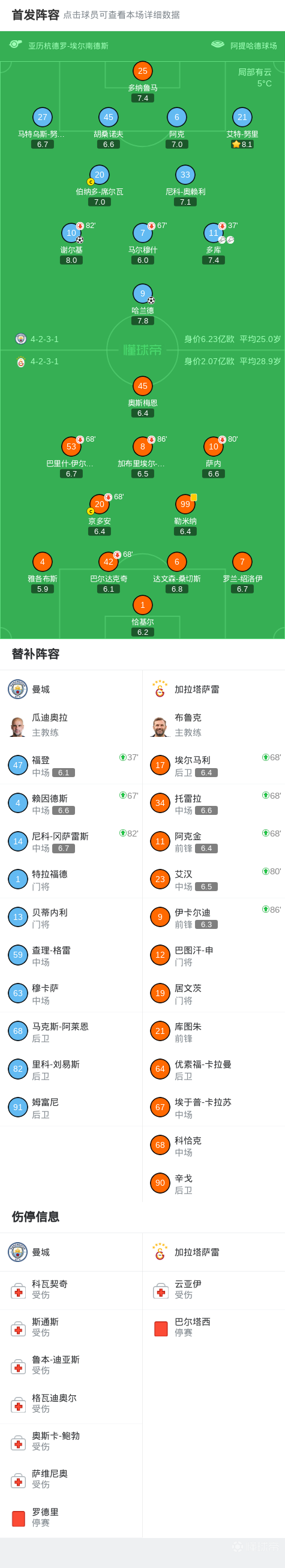 第29分钟,多库晃动后将球回做,谢尔基破门,曼城2-0加拉塔萨雷