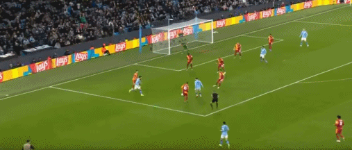 第79分钟,福登传中,哈兰德腾空射门没有打到