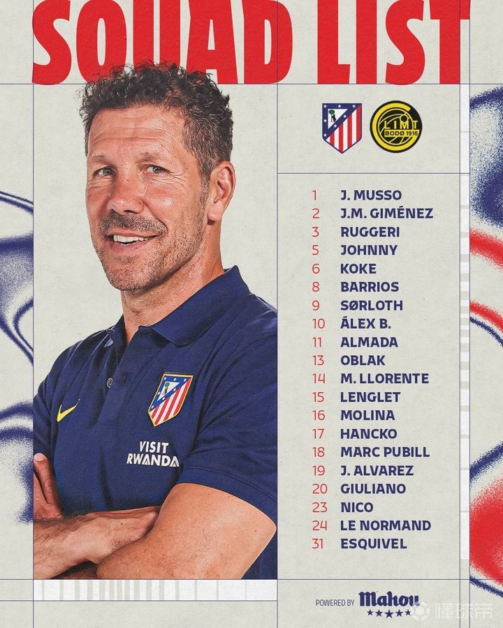 北京时间1月28日,马竞官方公布了欧冠主场对阵博德闪耀的大名单,格列兹曼缺阵,阿尔瓦雷斯、瑟洛特在列。
