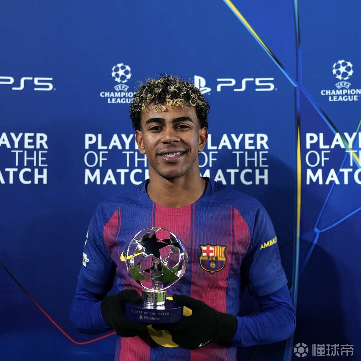 本场比赛贡献一球一助的亚马尔最终被评为欧冠官方全场最佳球员,并在赛后领取了奖杯,为他颁奖的是目前正在养伤的队友加维。