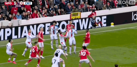第5分钟,怀特乱战中推射近角破门,诺丁汉森林1-0领先水晶宫