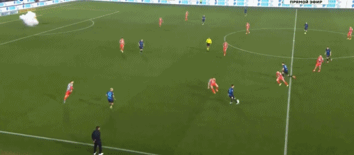 第49分钟,突发情况,球迷扔的烟火在奥代罗身边炸开,好在球员无大碍