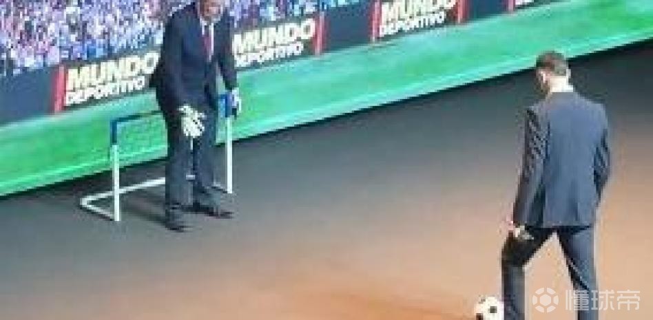 霍安-加西亚从英格列斯百货加泰罗尼亚区公关总监伊娃-弗兰克斯手中接过了奖杯,随后还上演了一幕别开生面的趣味环节。颁奖典礼的舞台上出现了一座标准尺寸的虚拟球门,在主持人霍尔迪-巴斯蒂的提议下,这座球门被立刻换成了迷你尺寸,他还向霍安-加西亚发起挑战,让这位门将站上点球点主罚,而自己则临时客串门将。