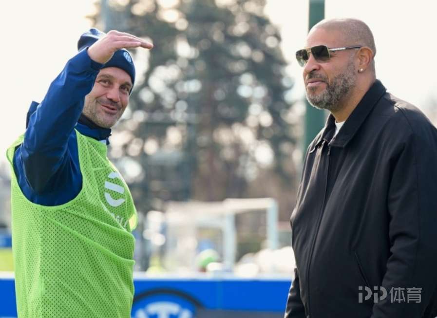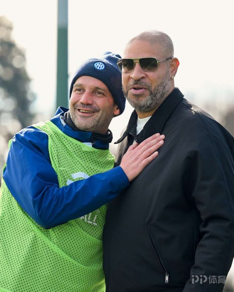 国米官方晒照,球队名宿阿德里亚诺造访基地。