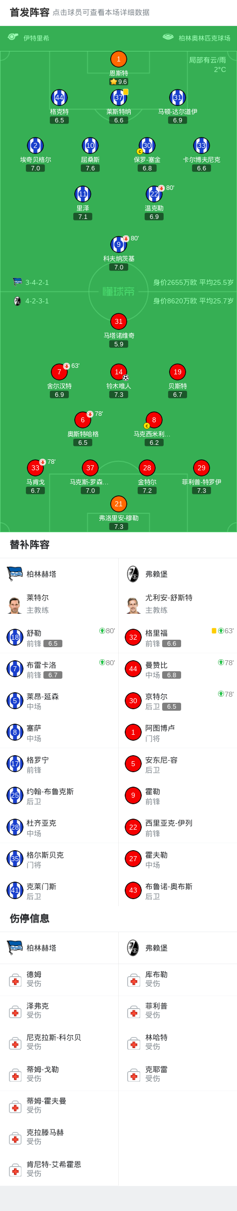 北京时间2月11日德国足协杯 1/4决赛,柏林赫塔对阵弗赖堡。弗赖堡铃木唯人破门。最终比分柏林赫塔 0-1 弗赖堡。