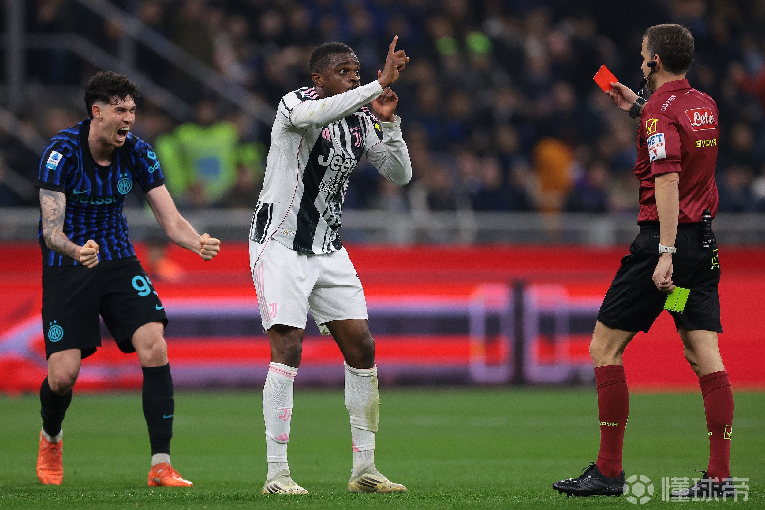 确实存在一个较新的先例,同样涉及尤文与国米的对决。2023年意大利杯半决赛中,卢卡库被罚下后,意大利足协主席取消了其停赛处罚。但需要强调的是,当时的决定有特殊背景——经查证,球员在被罚下前曾遭到对方球迷严重且反复的种族歧视行为。