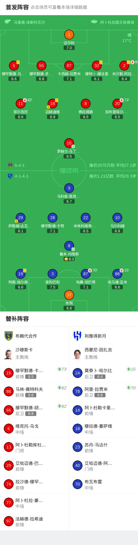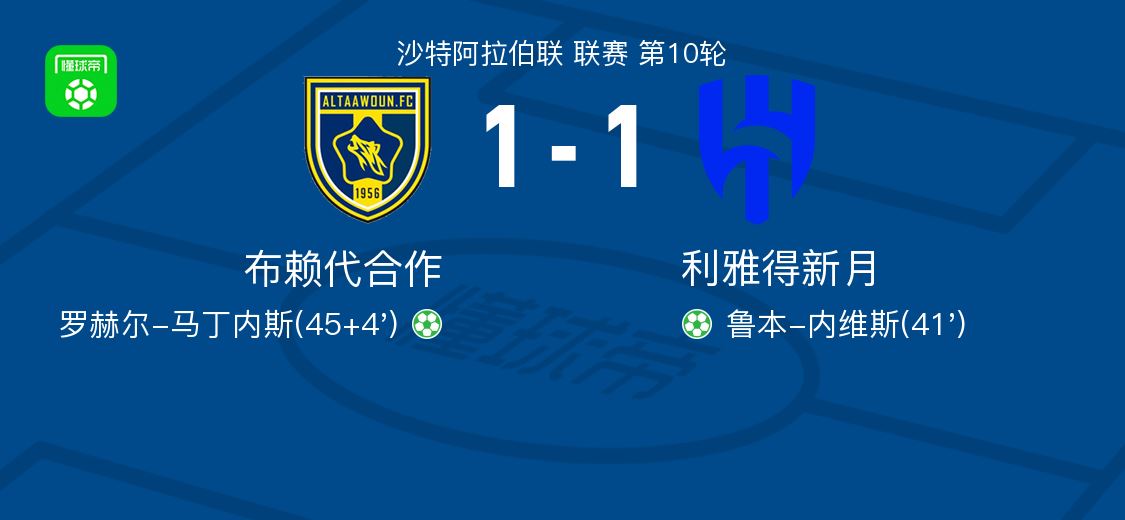 北京时间2月25日沙特阿拉伯联 联赛 第10轮,布赖代合作主场对阵利雅得新月。布赖代合作罗赫尔-马丁内斯破门。利雅得新月鲁本-内维斯破门。最终比分布赖代合作 1-1 利雅得新月。