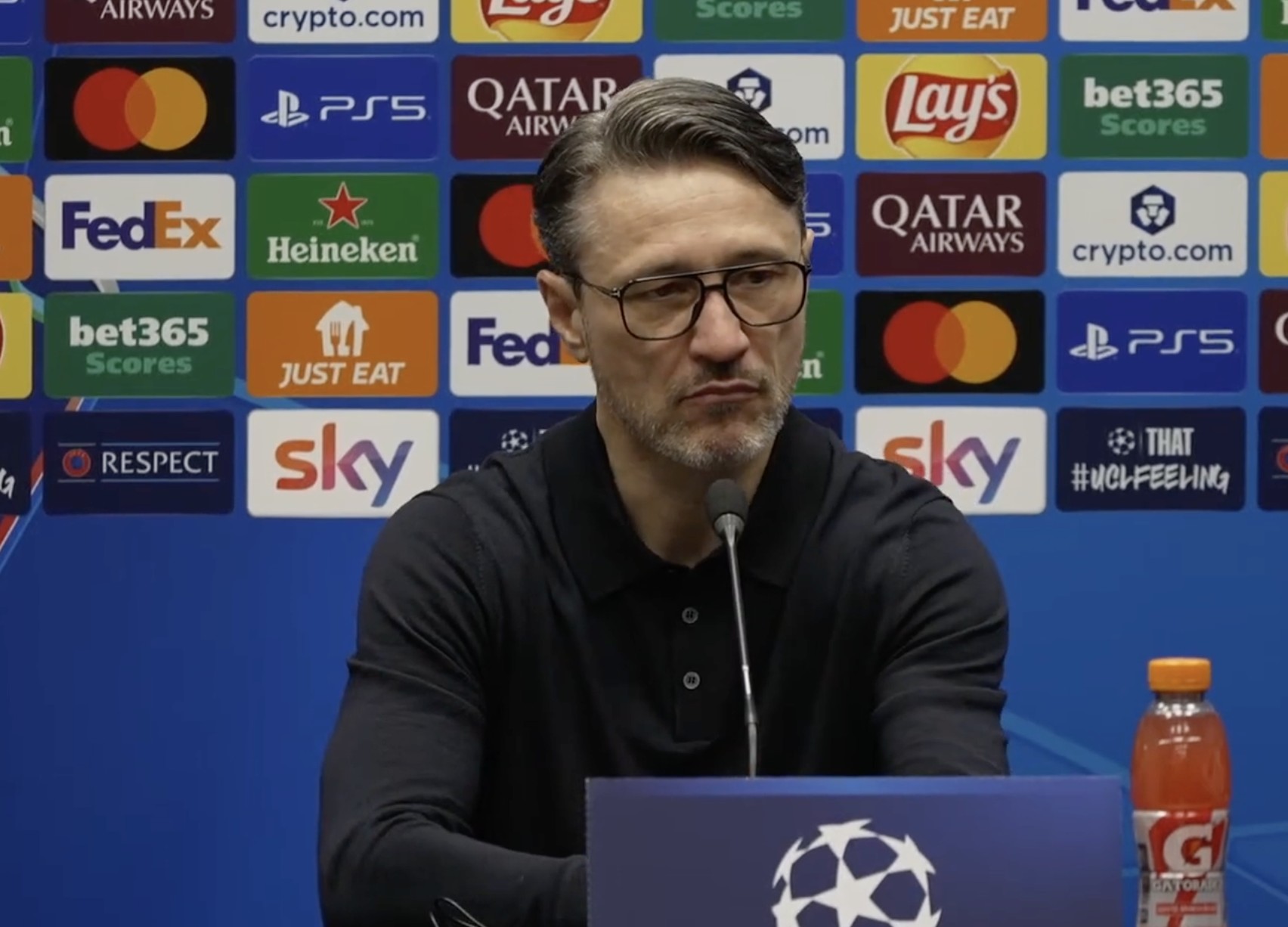 科瓦奇:我在一周前以及昨天都说过,这是五五开的机会。在这样的小球场、热烈的氛围中,你必须顶住压力,必须接受并赢下对抗,要有锐气和侵略性,要有存在感。今天对手在这些方面远胜于我们。丢四个球当然每个球都有失误,但关键在于强度和侵略性,而我们没有在90分钟里持续展现出来。因此我们被惩罚了,出局是合理的。
