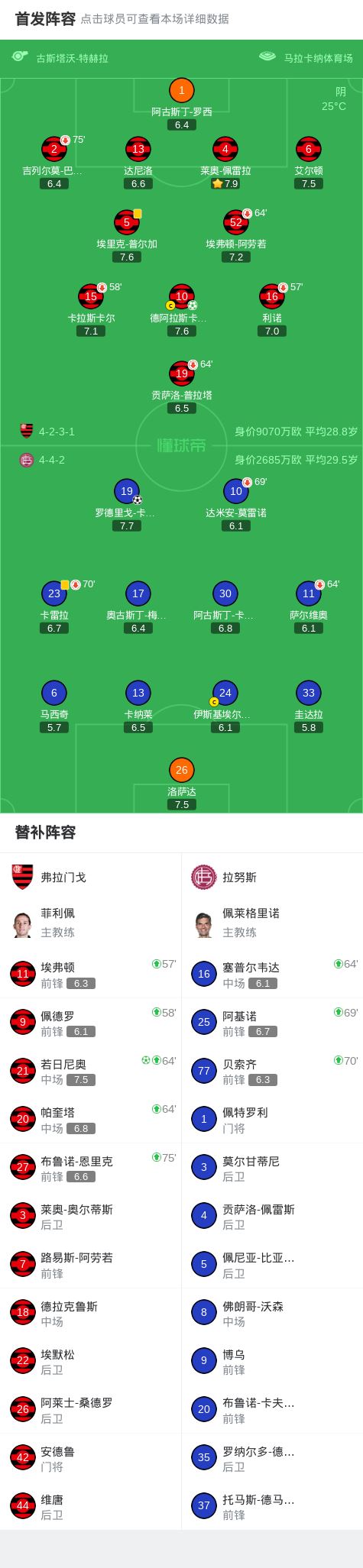 第37分钟,卡雷拉手球送点,德阿拉斯卡埃塔主罚点球命中,弗拉门戈1-1