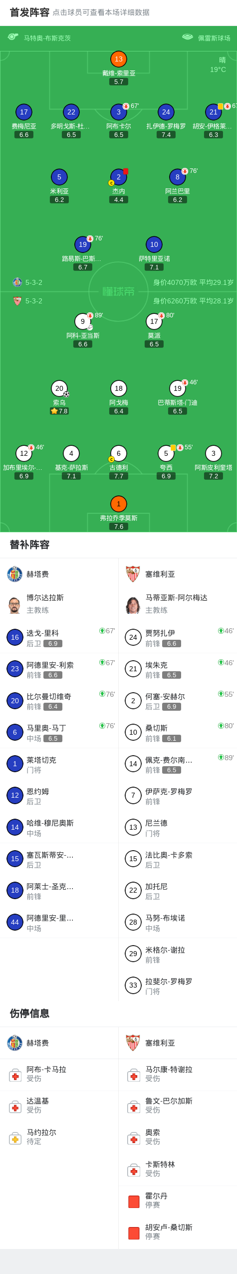 第26分钟,赫塔费球队杰内吃到红牌。
