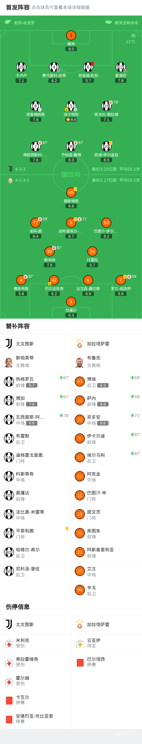 第70分钟,加蒂门前推射空门破门,尤文2-0加拉塔萨雷