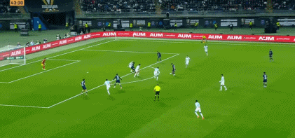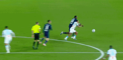 第45分钟,马赛反击,努诺-门德斯回追将球断下