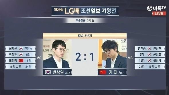 最终,韩国裁判现场宣布:因为柯洁提子没有放到棋盒盖,正常判罚两目,在协商后柯洁提出重赛,不接受判罚,选择退赛,卞相壹以2-1的比分夺冠。但卞相壹在这次LG杯决赛中未真正拿下任何一局的胜利,成为格外罕见的“零胜冠军”。