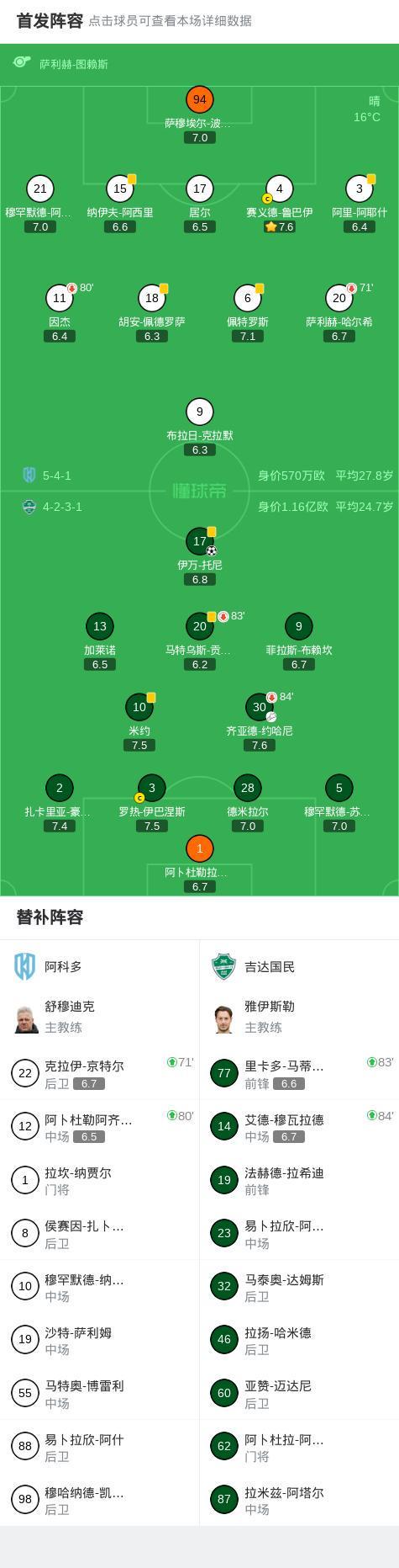第58分钟,吉达国民球员齐亚德-约哈尼助攻伊万-托尼打入一球。