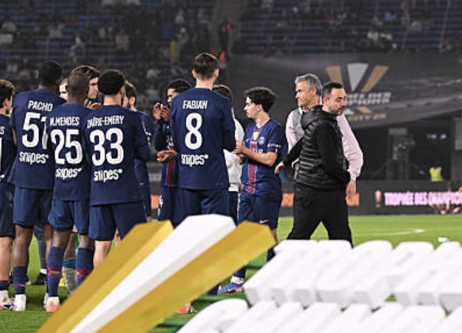 • 巴黎队友捧杯庆祝夺冠 努诺-门德斯捧工作人员光头