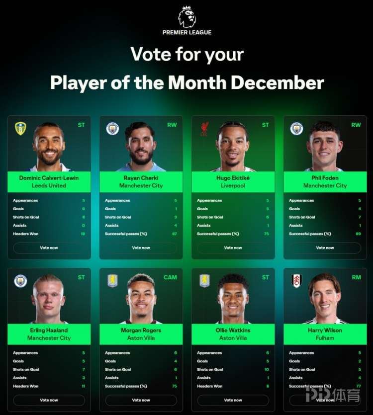 • 英超12月最佳球员候选:哈兰德、谢尔基、埃基蒂克、福登在列