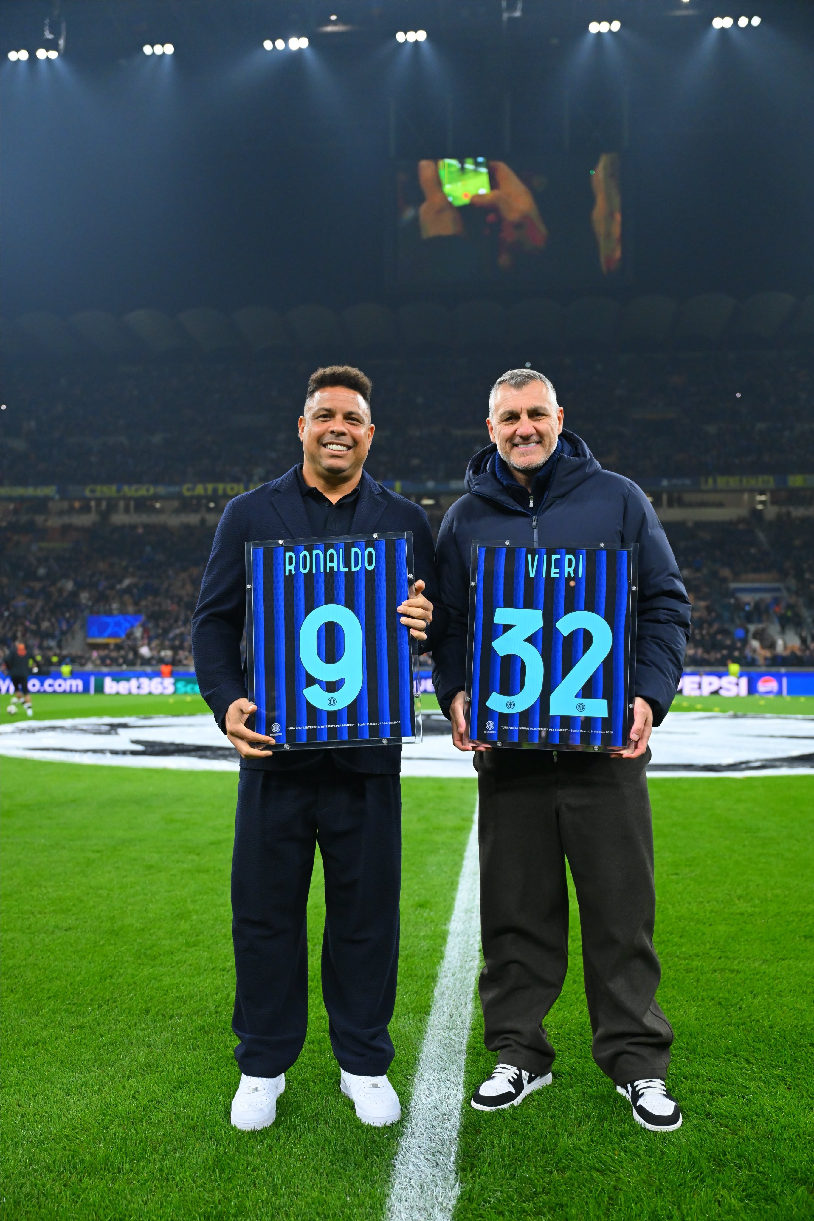 • 罗纳尔多和维埃里亲临圣西罗,并获赠国米纪念球衣