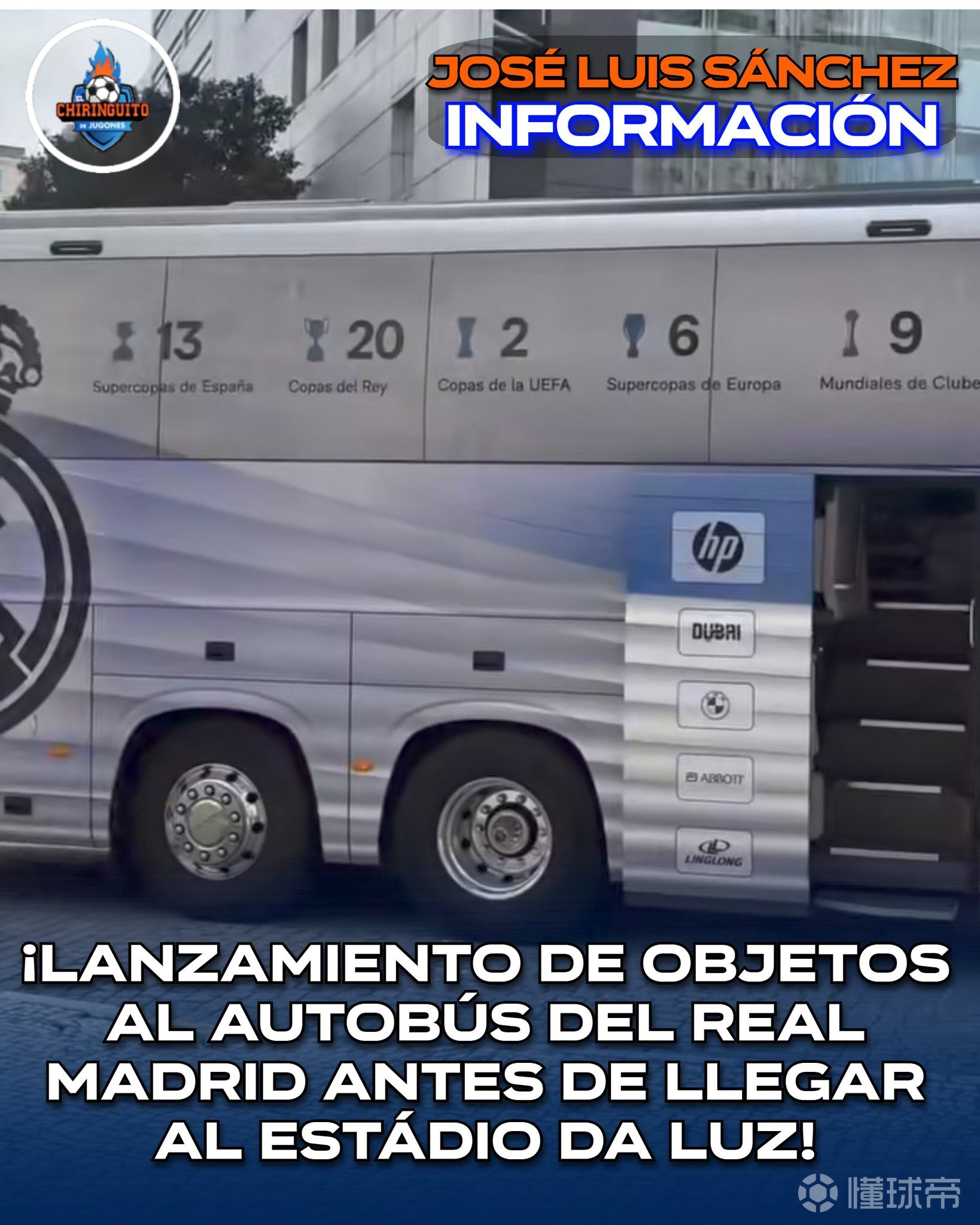 • 六台:皇马大巴遭本菲卡球迷投掷杂物,不得不绕道前往球场