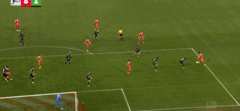 • 第88分钟,约纳坦-塔直塞,格雷茨卡铲射破门,拜仁8-1狼堡