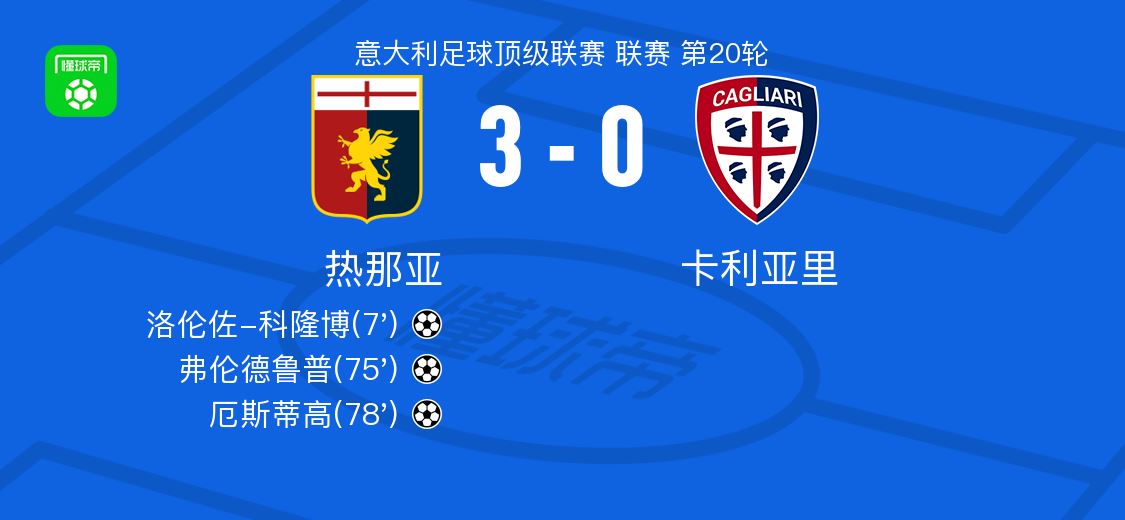 • 热那亚3-0大胜卡利亚里,厄斯蒂高、弗伦德鲁普破门